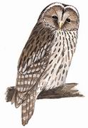 描述:体大(54厘米)的灰褐色鸮鸟。无耳羽簇,面庞灰色,眼褐色。看似一只体大的灰林鸮,但下体纵纹较简单。极似异域分布的长尾林鸮。