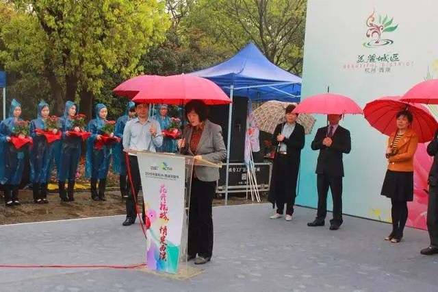 百花生日是良辰,未到花朝一半春。4月3日,“花开杭城 情定西溪”2015中国杭州·西溪花朝节正式启幕。省政协副主席陈加元,浙江省旅游局党组书记王文娟,浙江省林业厅副巡视员王章明,浙江省旅游协会副会长朱红炜,杭州市人民政府副秘书长张文戈以及杭州市旅游委员会、杭州市林水局的相关领导,西湖区领导王立华、章根明、张岐等区领导来到现场调研花朝节活动并向幸福老人赠送鲜花,为花朝骑游授旗。