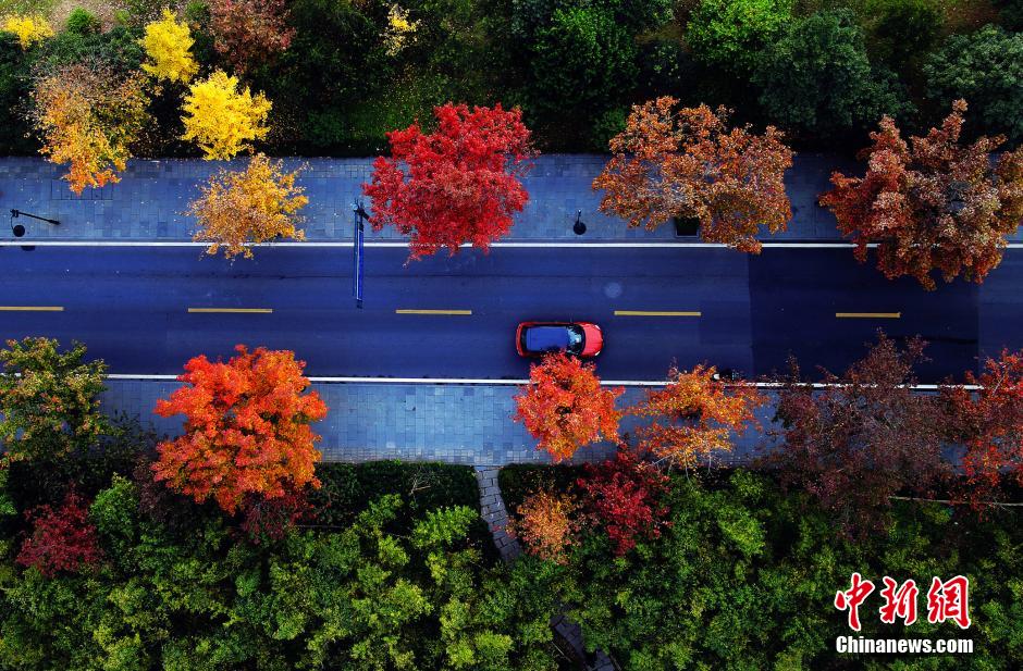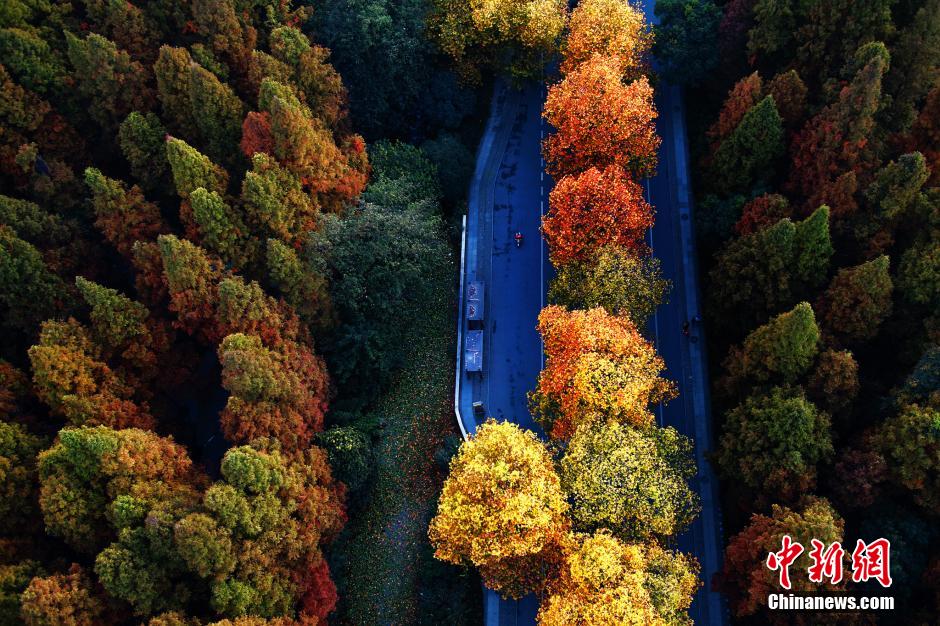 近日,中新社记者通过航拍机从高空俯瞰杭州,在镜头里,初冬杭州是一幅幅色彩缤纷的优美油画。