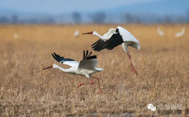 这时,日本鹤类专家原口优子女士在望远镜里惊奇地发现,群里有两只白枕鹤,引得大家都来观看。白枕鹤虽属国家Ⅱ级保护动物,但全球种群数量只有5500~6500只,属于濒危物种,比白头鹤、灰鹤更加珍贵和稀有,白枕鹤在这里落脚,应该是在寻找繁殖地了。