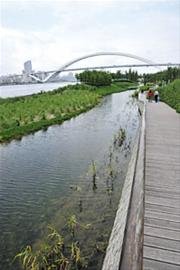如今,走进世博后滩公园,你就会在黄浦江畔看到湿地的原生态风貌。设计者们采用立体分层布局,把江水引入湿地。