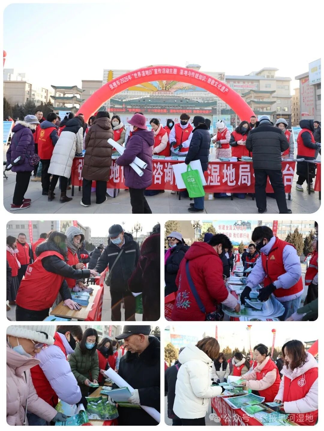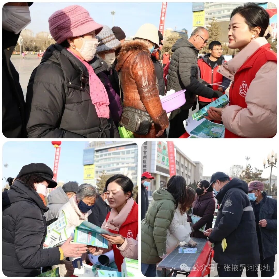 2月2日上午,张掖黑河湿地国家级自然保护区管理局联合市自然资源局、市生态环境局、市水务局、市林业和草原局及甘州区相关部门,在甘州区中心广场集中开展了“湿地与传统知识:致敬文化遗产”世界湿地日主题宣传活动。