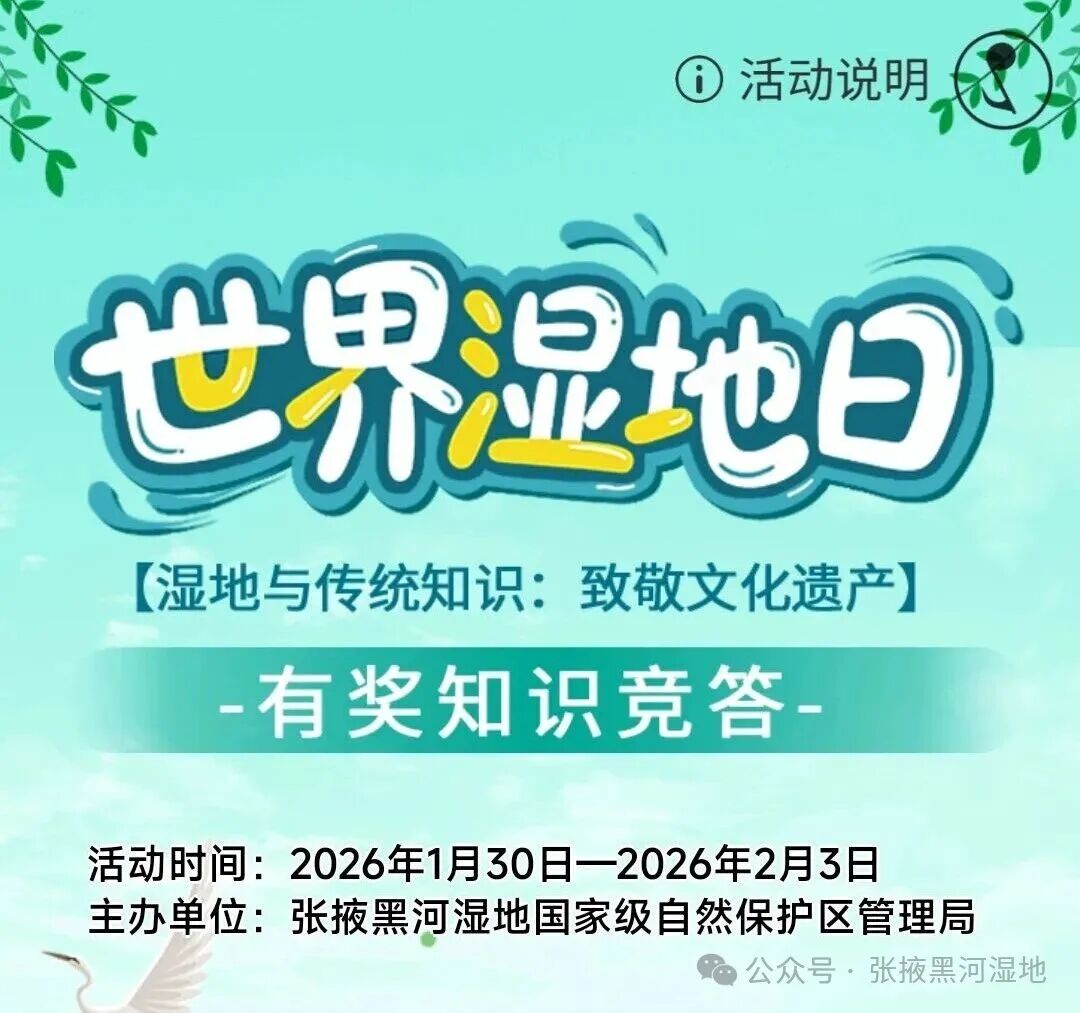 2026年2月2日,我们迎来了第30个“世界湿地日”。张掖黑河湿地国家级自然保护区管理局精心策划、统筹推进,组织开展了形式多样、覆盖面广、实效性强的“世界湿地日”系列宣传活动,全方位传递湿地保护理念,凝聚生态守护共识。