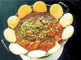 流派,即冀中南派、宫廷塞外派、京东沿海派。冀中南派是以保定为代表,它又有山区禽类和水区鱼类两种,享誉中外的“白洋淀全鱼宴”正是鱼类菜肴中的精品。白洋淀全鱼宴极富特色。其一,部分鱼菜是吃鱼不见鱼的。这主要是采用了多种刀工和烹调方法,从造型到口味。色调都不相同,有的造型很美,富有诗情画意。其二是因材施艺,物尽其用。以炒鱼片儿为例,主要是用鱼背,这里肉肥而嫩;鱼头则可做鱼汤了,成为名副其实的一鱼两做。其三,讲究当地原料入馔,以烹制鲜活见长,原料丰富,刀工细腻,口味清淡。菜品配以精美瓷器,别具风格。