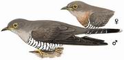 描述:中等体型(30厘米)的偏灰色杜鹃。似大杜鹃,区别在于尾灰并具黑色次端斑,且虹膜较暗,灰色头部与深灰色的背部成对比。雌鸟较雄鸟多褐色。亚成鸟头及上背具偏白的皮黄色鳞状斑纹。