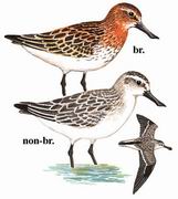 描述:体小(15厘米)的灰褐色滨鹬。腿短,上体具纵纹,白色眉纹显着。特征性的勺形嘴在野外不易辨别。冬季极似红胸滨鹬,但体羽灰色较浓,额及胸较白。夏季上体及上胸均为棕色。