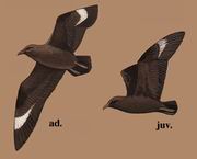 描述:体大(63厘米)的肥胖型褐色贼鸥。头顶深褐,中央尾羽甚尖细。初级飞羽基部具白色宽大块斑。尾短而圆。与麦氏贼鸥区别在于体型较大,两翼基部较宽,嘴较大,上体与头部无反差;一些鸟头无深色;通体为偏红的褐色,体羽多细纹。