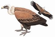 描述:体大(100厘米)的褐色鹫。 颈基部具松软的近白色翎颌,头及颈黄白。亚成鸟具褐色翎颌。甚似高山兀鹫,区别在于飞行时上体黄褐而非浅土黄色,胸部浅色羽轴纹较细。与秃鹫的区别在下体浅色,且尾呈平形或圆形而非楔形。