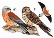 描述:体小(30厘米)的红褐色隼。雄鸟头灰色,上体赤褐而无斑纹,腰及尾蓝灰。下体淡棕色,颏及臀白。胸具稀疏黑点。尾近端处有黑色横带,端白。雌鸟红褐色较重,上体具横斑及点斑,下体具深色纵纹。雄雌两性均似红隼,但体型较小而纤细,雄鸟色彩较鲜艳,黑色点斑较少。雄鸟翼上覆羽蓝灰,且无红隼眼下的深色条纹。飞行时尾呈楔形。爪浅色,而红隼爪黑。