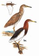 描述:体型略小(47厘米)、翼白色、身体具褐色纵纹的鹭。繁殖羽:头及颈深栗色,胸紫酱色。冬季:站立时具褐色纵纹,飞行时体白而背部深褐。