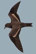 描述:体小(20厘米)的深色海燕。全身体羽深褐,具明显的淡灰色翼斑,尾略分叉。