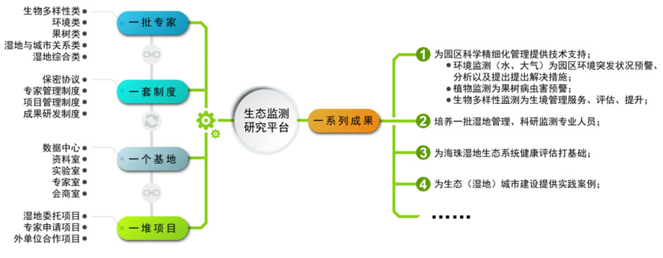 ——海珠湿地 实施生态监测规划,聚合华南科研资源,打造科研平台,搭建门类齐全的湿地监测体系,对湿地资源全因子进行持续监测跟踪,建立监测大数据共享机制,为湿地全面保护、科学发展保驾护航。